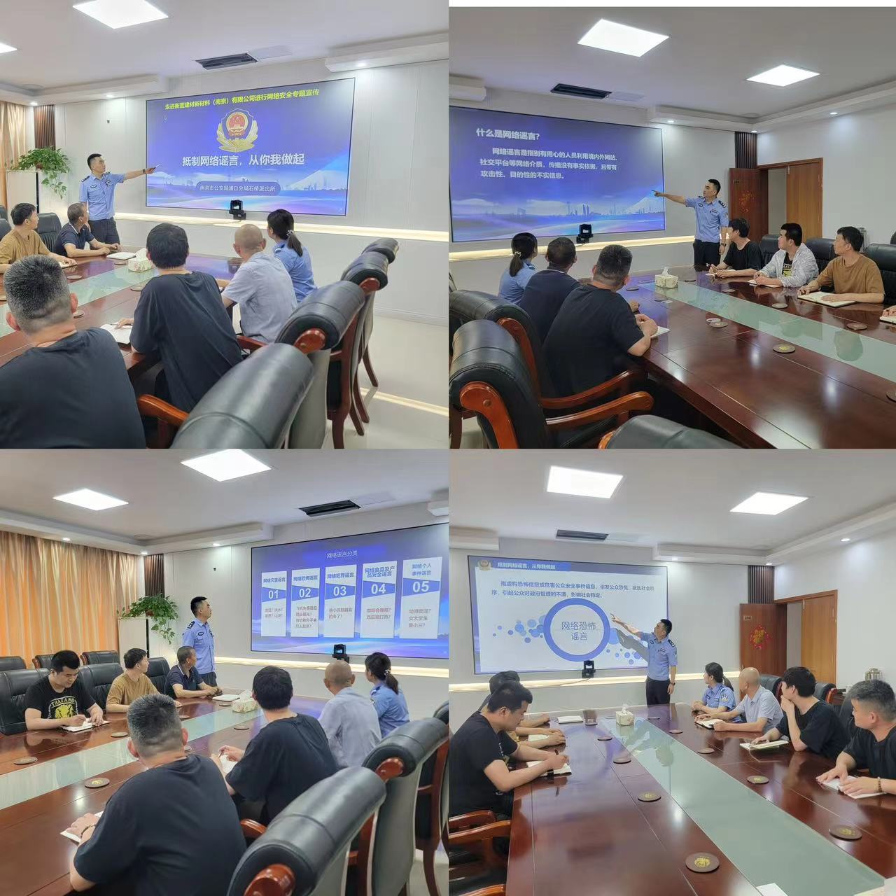 2024613日上午,南京市公安局浦口分局石橋派出所組織專業(yè)宣傳警力到我公司進(jìn)行網(wǎng)絡(luò)安全教育宣傳,向企業(yè)員工宣講什么是網(wǎng)絡(luò)謠言,網(wǎng)絡(luò)謠言的分類,發(fā)布網(wǎng)絡(luò)謠言的處罰種類以及怎樣避免網(wǎng)絡(luò)謠言的發(fā)生。